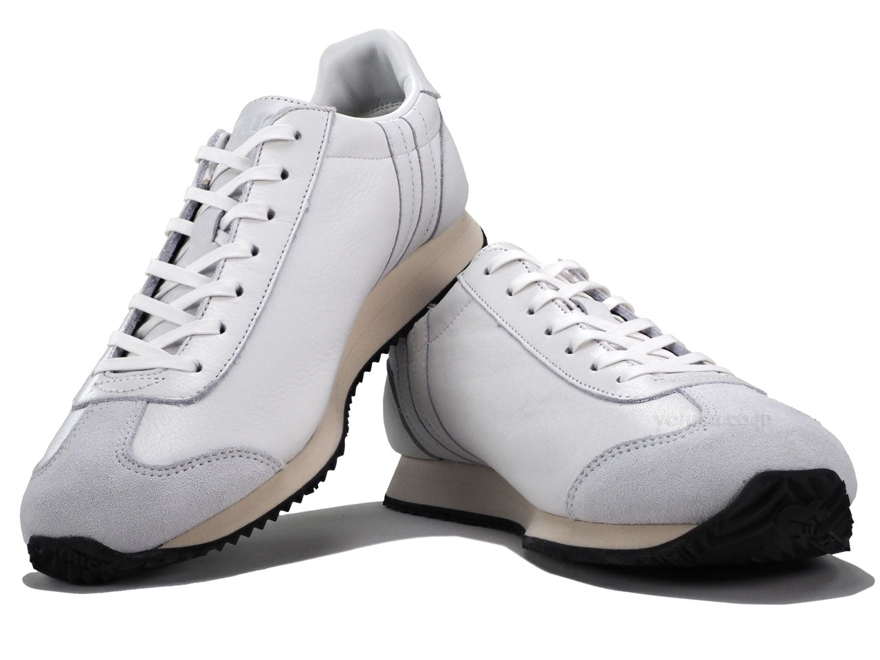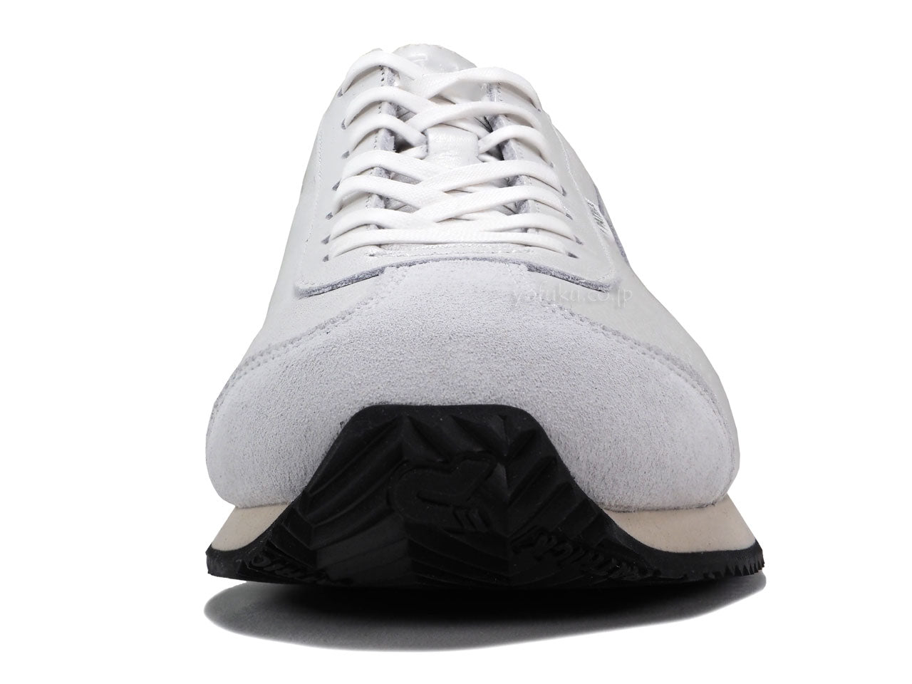 ホワイトのアッパーと同色同素材のラインにシルバーグレーのベロア、ホワイトのシューレースと履き口、サンドベージュのミッドソールにブラックのアウトソール。