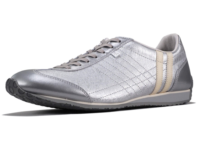 全体的にシルバーのアッパーにろう引きグレーのシューレース、オフホワイトのライン、ライトグレーのミッドソール、グレーのアウトソール。シルバーグレーのピッグレザーの履き口。限定生産商品です。