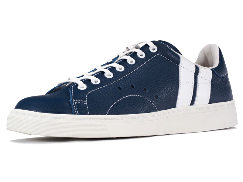 Navy upper with hoff-white footwear. White brazed laces, white sole and lines.