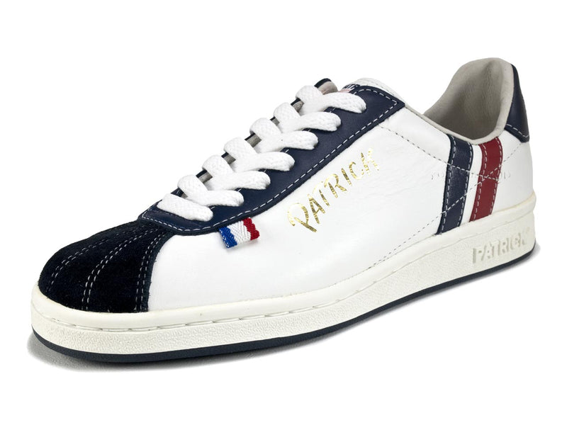 A model that uses the wooden pattern of Patrick's historical model "Harlem" and uses glossy steer leather for the upper. The simple design and sporty color scheme combine with the tricolor piss name attached to the side and the logo stamped on the outside to create an atmosphere that is typical of Patrick's classic model.