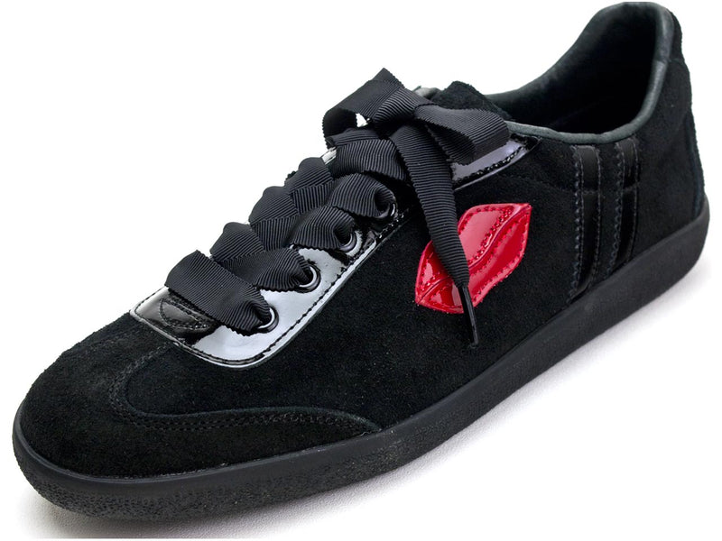 The lip made of genuine leather enamel on the side is attached to the outside, the heart is attached to the inside, the line and shoelaces are also finished with enamel, and the ribbon-like wide grosgrain shoelaces create a pop and elegant atmosphere.