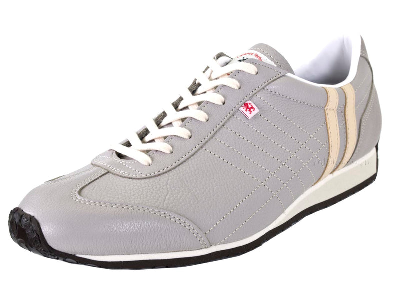 Greige upper with gray and beige combined, natural shoe laces, and beige lines. White and sand beige midsole, chocolate brown outsole. A combination of off-white collars. Limited production color.