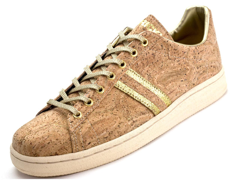 表面軟木和帆布之間壓金箔,所以金色順著軟木的紋路出現,kip皮革的金線、金色鞋帶、開口都很漂亮。