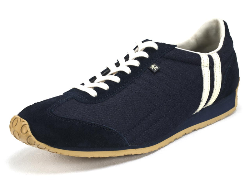 海軍藍鞋面和天鵝絨、天然鞋帶和線條、海軍藍中底和天然外底。銀灰色豬皮領。這是一個限量生產模型。