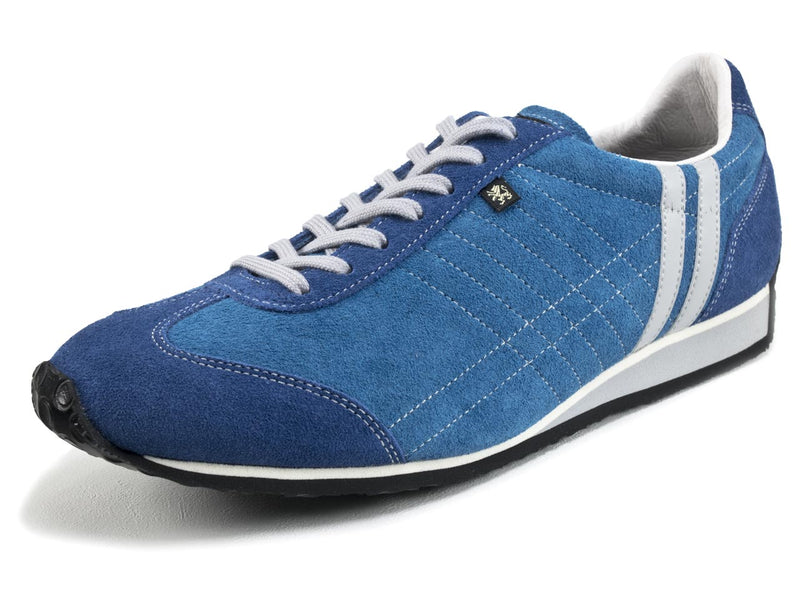 淺灰色線條與漂亮的藍色調相映生輝。灰色鞋帶。淺灰色和白色中底。黑色外底。銀灰色豬皮領。限量生產顏色。