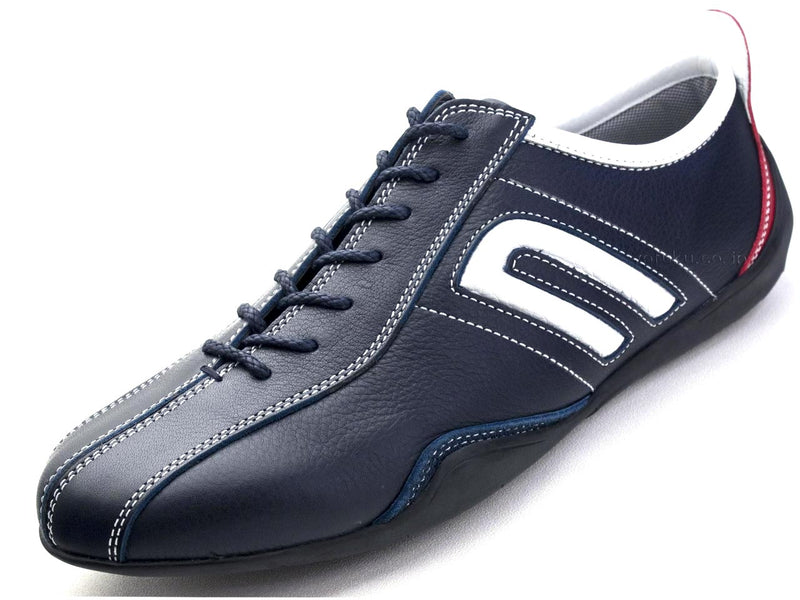 海軍藍運動鞋與牛仔布和斜紋棉布褲搭配得很好。